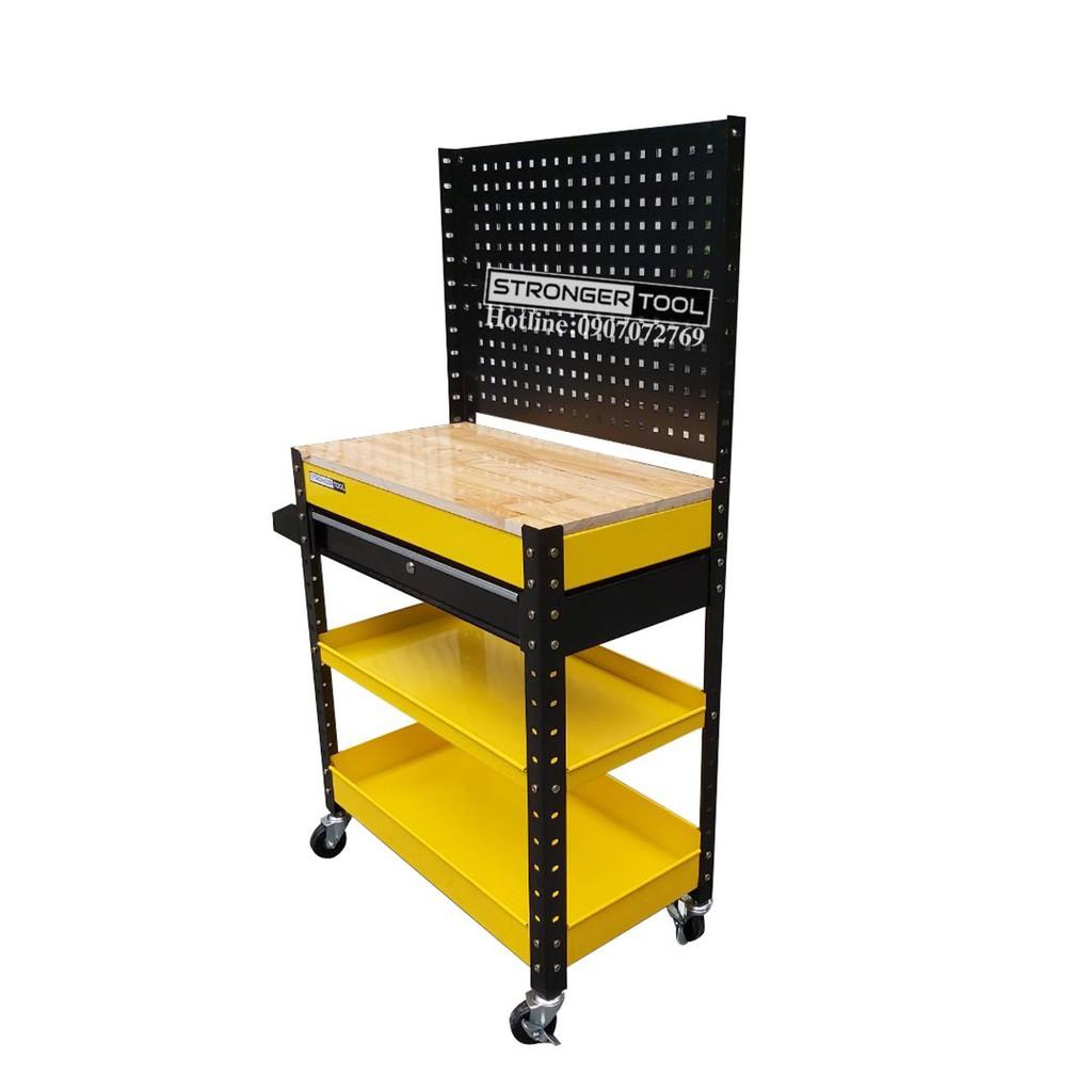 ✨XE ĐẨY DỤNG CỤ 1 NGĂN KÉO CÓ MẶT BÀN GỖ VÀ TẤM TREO STRONGER TOOL