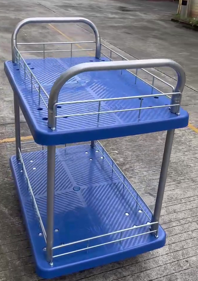 Xe đẩy hàng được thiết kế 2 tầng gọn gàng, hiện đại phù hợp để vận chuyển hàng hóa trong các cơ quan, siêu thị, nhà máy, các xí nghiệp…