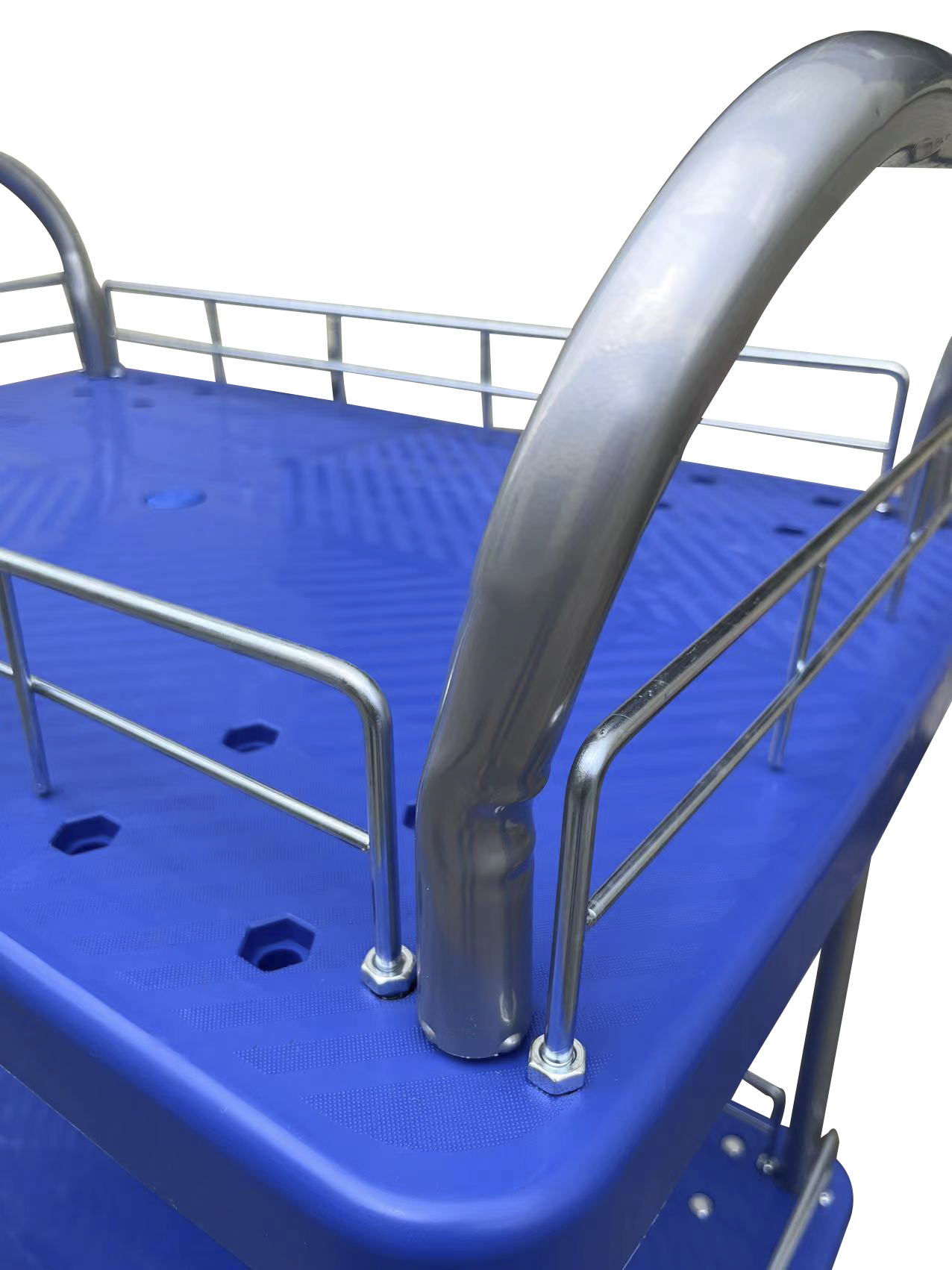 Xe đẩy hàng được thiết kế 2 tầng gọn gàng, hiện đại phù hợp để vận chuyển hàng hóa trong các cơ quan, siêu thị, nhà máy, các xí nghiệp… Sản phẩm có sàn xe