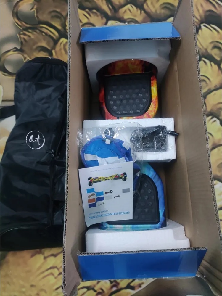 - 1 x Hộp Carton bảo vệ bên ngoài, kích thước hộp: 60 30 30cm – Tổng trọng lượng: 10.5 kg 1 x Xe 2 bánh tự cân bằng 6.5 inch 1 x Sạc pin 110-220 V 1 x Hướng dẫn sử dụng 1 x Quà tặng bộ bảo vệ 1 x Đồng hồ LED 1 x Bộ miếng dán sticker Thích hợp đi đường phẳng, hơi ghồ ghề THÔNG SỐ KỸ THUẬT XE ĐIỆN CÂN BẰNG: Dòng sản phẩm: Xe Cân Bằng Điện 6.5 inch Bluetooth Hệ thống tự cân bằng khi khởi động Hỗ trợ Bluetooth Đèn Led nhấp nháy. Tốc độ tối đa: 20-25km/h Tải trọng tối đa: 150kg ( thiết kế khung nhôm nguyên khối, chịu tải cao ) Thời gian sạc: 3-4 giờ Dung lượng pin : 4400 MAH Thời gian đi khi pin đầy: 2-3 tiếng liên tục Động cơ xe điện cân bằng: 2 động cơ 300W Hạn chế tiếp xúc mới nước Lốp xe điện: 6.5 inch bằng cao su đặc, độ ăn mòn thấp Kích thước: 65cm 24cm 23cm Trọng lượng: 8kg. Xin giới thiệu phiên bản xe điện cân bằng tự cân bằng 6.5 inch bluetooth. Ngoài các tính năng giống phiên bản thông thường, xe điện cân bằng tự cân bằng 6.5 inch bluetooth còn có thêm tay xách dễ cầm nắm để đi du lịch, đi chơi. Xe điện tự cân bằng bánh xe cỡ lớn khi không có người lái là phiên bản mới nhất với tính năng tự cân bằng giống chiếc Mini Robot Pro. Tính năng này giúp cho người lái nhất là những người mới chơi dễ dàng đứng lên xe mà không lo bị xe bị trượt về phía trước.