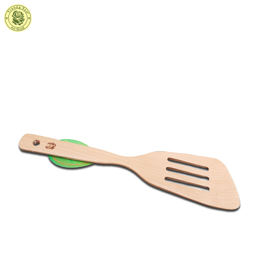 Sạn gỗ 04 có kiểu dáng như Sạn Gỗ 03 Lỗ - Trường Sơn, chuyên dùng để chiên, xào, đảo, trở thức ăn, mũi sạn có 3 rảnh dọc dùng để lượt bớt nước, dầu mỡ