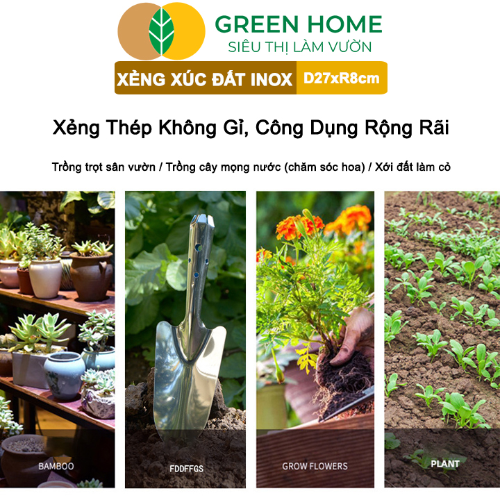 ✨Xẻng Xúc Đất Greenhome, D27xR8cm, Dụng Cụ Làm Vườn, Hợp Kim Chống Rỉ, Siêu Bền, Dễ Vệ Sinh, Tiện Lợi