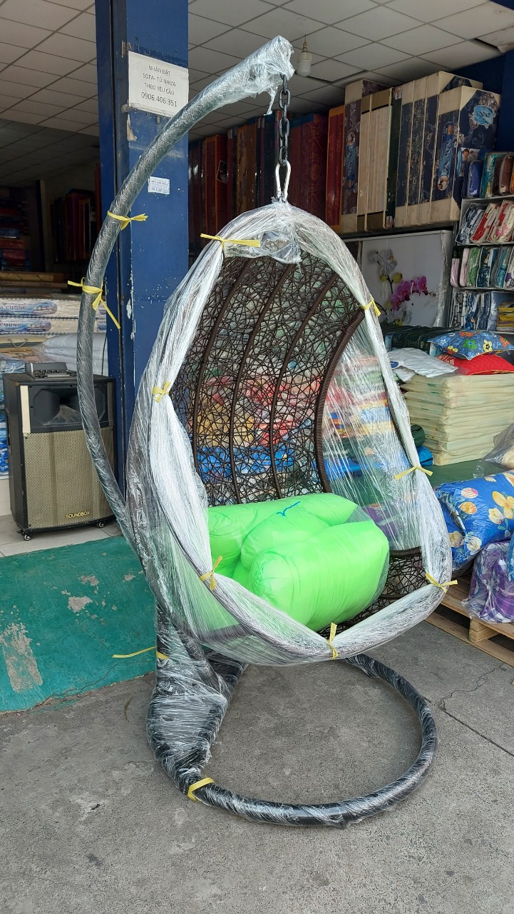 - Chất liệu: - Cần xích đu được làm bằng sắt sơn tĩnh điện, chắc chắn, độ bền cao. - Lồng xích đu được làm bằng mây PE chắc chắn và có độ bền cao. - Gối xích đu được làm từ gòn và vải bố màu sắc tươi tắn tạo thêm điển nhấn cho căn nhà. Dễ dàng tháo rời để mang vào trong nhà bảo quản hoặc vệ sinh. + Tính năng: - Được sử dụng để ngồi thư giãn, đọc sách, giải trí…ngoài ra là một vật không thể thiếu để trang trí thêm cho sân vườn hoặc ban công. + Thiết kế: - Được thiết kế nhỏ, gọn tối đa để phù hợp nhất với những căn nhà không có nhiều không gian. - Phần mốc treo giữa Khung và lồng xích đu có những mắc xích giúp người dùng có thể thay đổi độ cao để phù hợp với nhiều đối tượng (trẻ em, người cao tuổi, phụ nữ có ). Có thể tháo rời để mang vào trong để hạn chế ảnh hưởng từ nắng, mưa.