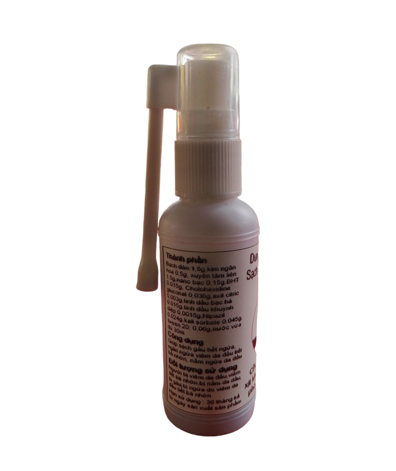 Sạch gàu hết ngứa kháng viêm kháng nấm,giảm rụng tóc,tăng sức đề kháng cho da,giúp da chắc khỏe Thông tin chung Thành phần Bạch đàn:1,5g,kim ngân hoa 0,5g, xuyên tâm liên 1.5g,nano bạc 0,15g,BHT 0.015g,Cholohexidine