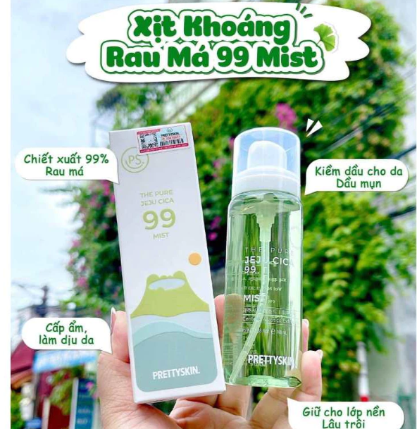 Xịt khoáng rau má Pretty Skin The Pure Jeju Cica 99 Mist 100ml REVIEW