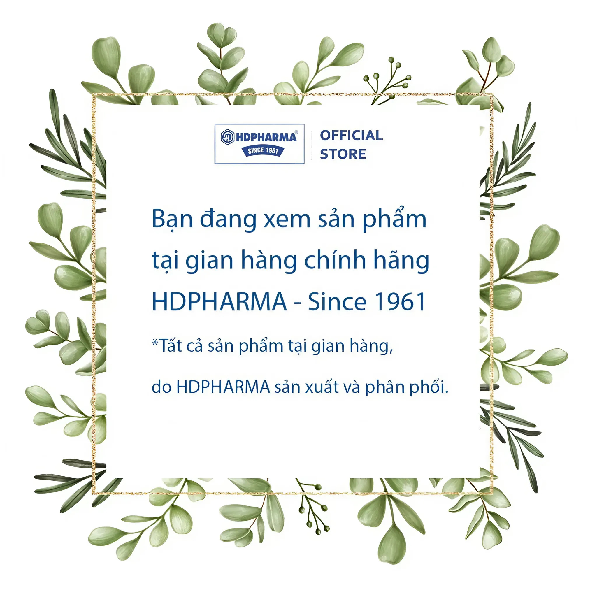 Xin chào! Bạn đang ở gian hàng chính hãng HDPHARMA - 1961. Tất cả các sản phẩm trong shop do HDPHARMA sản xuất và phân phối. Chúng tôi khuyến khích bạn mua hàng tại đây để đảm bảo nguồn hàng chính hãng, uy tín, chất lượng.