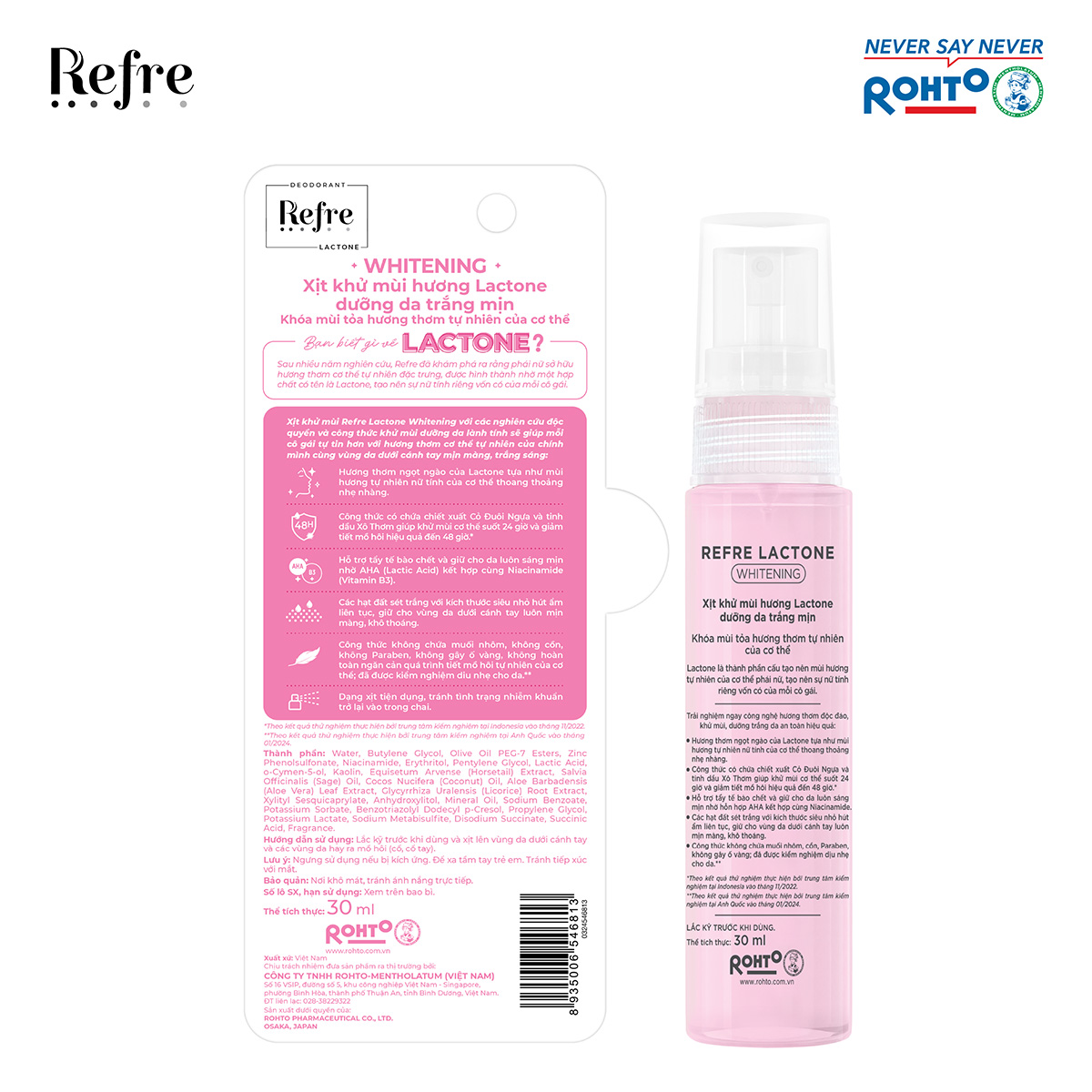 ✨Xịt khử mùi, khóa mùi tỏa hương thơm tự nhiên cơ thể Refre Lactone Whitening 30ml