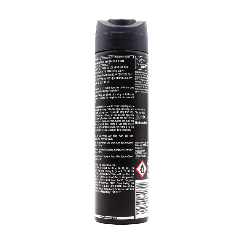 Xịt khử mùi ngăn vệt ố vàng cho nam Nivea Men Invisible Black&White với công thức tiên tiến giúp giảm hình thành vệt ố vàng trên áo. Giúp giảm tiết mồ hôi và khử mùi