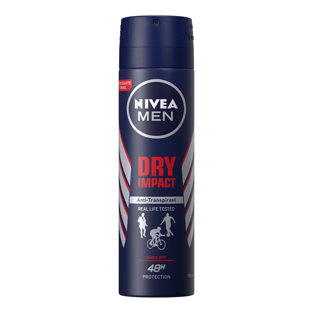 KHÔ THOÁNG Xịt khử mùi khô thoáng cho nam Nivea Men Dry Impact với công thức muối nhôm* giúp giảm tiết mồ hôi và ngăn mùi hiệu quả đến 48 giờ**, cho cảm giác khô