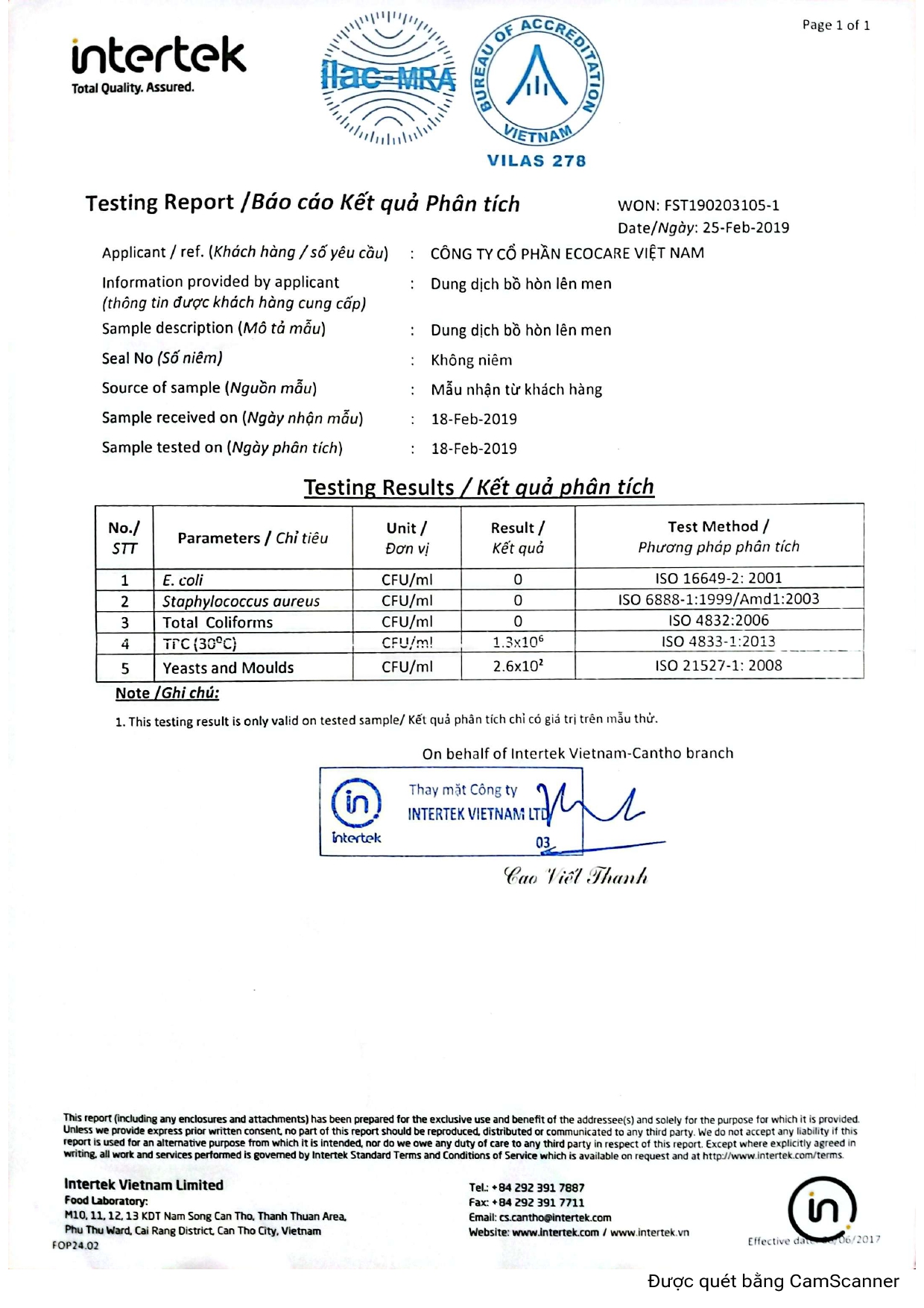 Sử dụng Công nghệ lên men bồ hòn đầu tiên tại Việt Nam được Cơ quan INTERTEK - Vương quốc Anh chứng nhận.