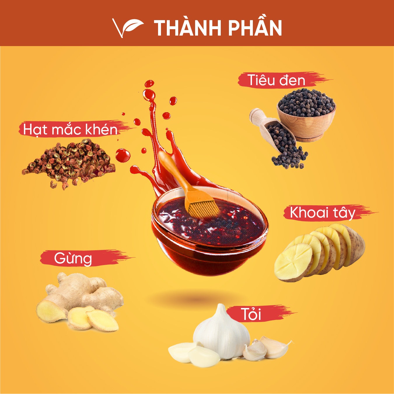- Thành phần chính: Nước, khoai tây, đường, nước tương, muối, gừng, nước tương đen, bơ thực vật, tiêu đen, tỏi, hạt mắc khén,...