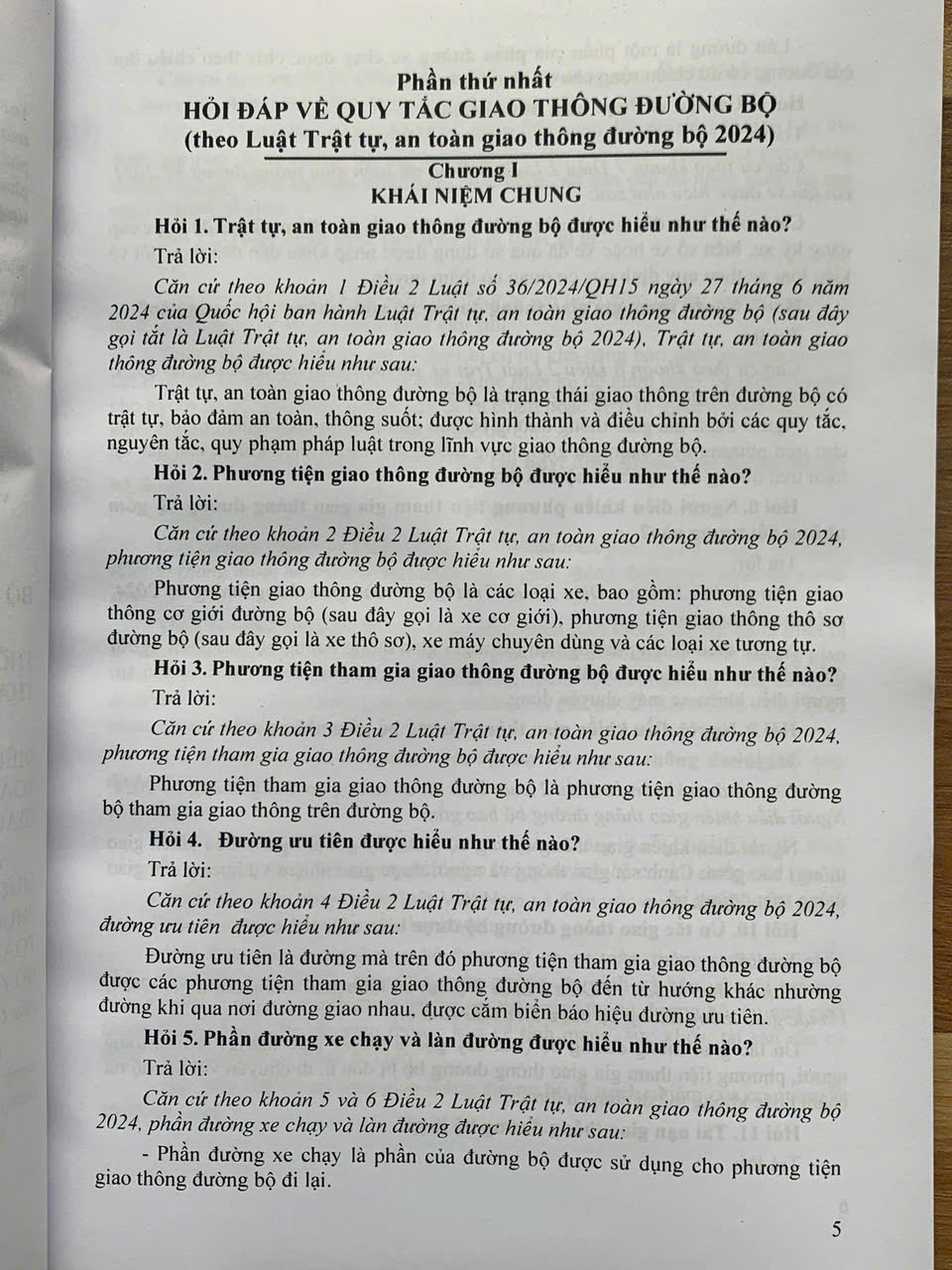 Phần thứ nhất. HỎI ĐÁP VỀ QUY TẮC GIAO THÔNG ĐƯỜNG BỘ (theo Luật Trật tự, an toàn giao thông đường bộ 2024)