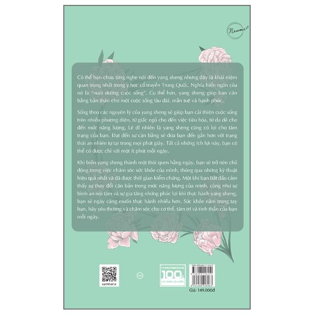 Sống theo các nguyên lý của yang sheng sẽ giúp bạn cải thiện cuộc sống trên nhiều phương diện, từ giấc ngủ cho đến việc tiêu hóa, từ da dẻ cho đến mức năng lượng. Lẽ dĩ nhiên là yang sheng cũng có lợi cho tâm trạng của bạn. Đạt đến sự cân bằng sẽ đưa bạn đến gần hơn với trạng thái an nhiên tự tại trong mọi phút giây. Tất cả những ích lợi này, bạn có thể có được chỉ với một ít phút mỗi ngày.