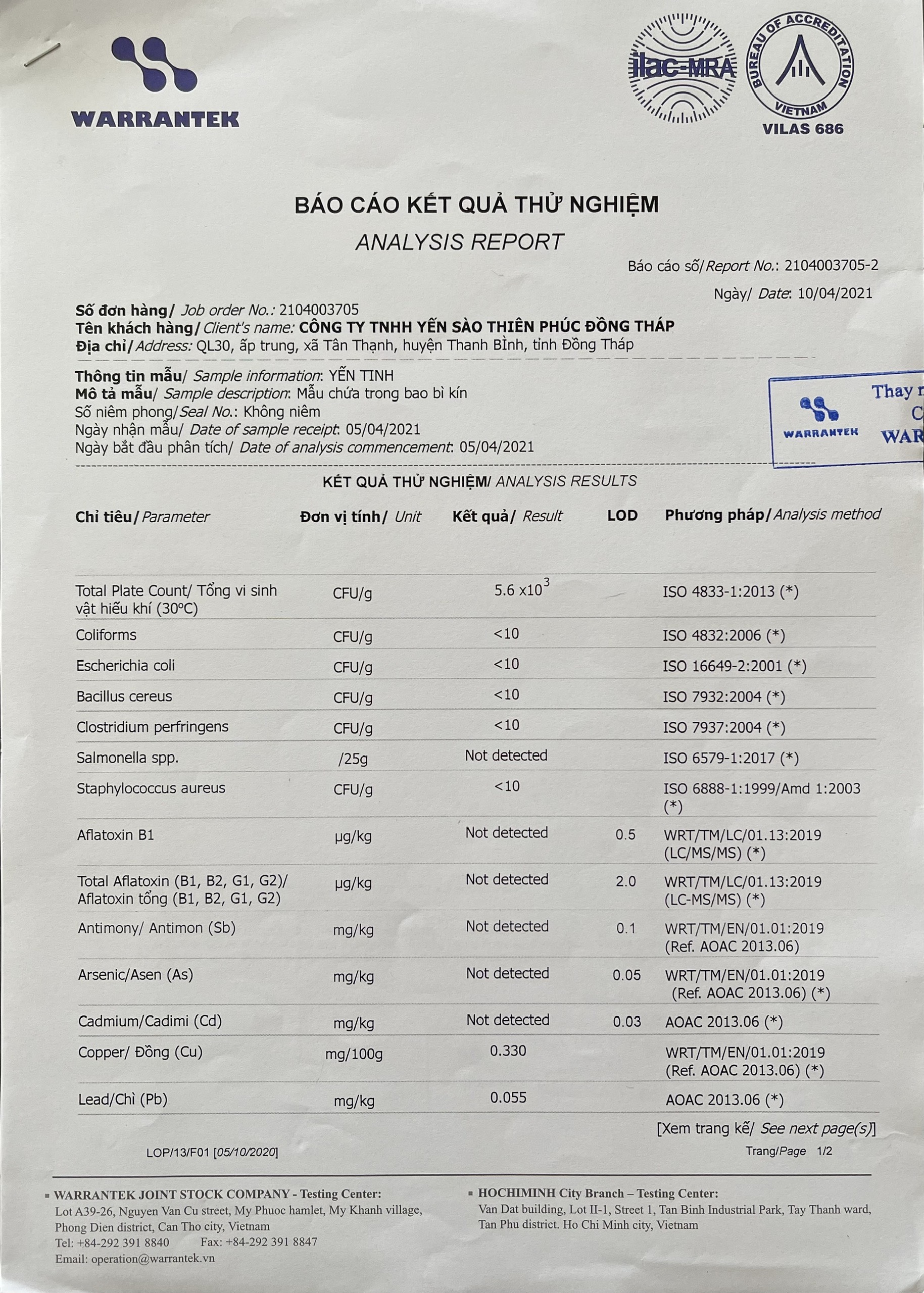 Lần đầu trên thế giới một loại súp yến cao cấp nhất được chưng theo cách truyền thống từ nguyên tổ yến khô 10g chứa 15 loại Axit Amin và khoáng chất. Súp yến nguyên
