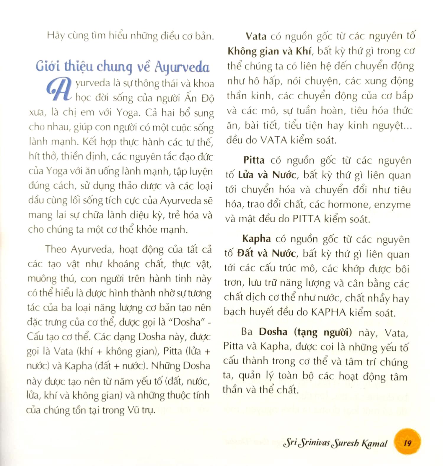 Yoga Theo Dosha "Yoga theo Dosha" là một cuộc hôn phối hạnh phúc, đầy phước báu, an lành giữa Yoga theo Dosha (thể trạng cơ thể, tính cách và tâm thần) và Ayurveda (Phương pháp